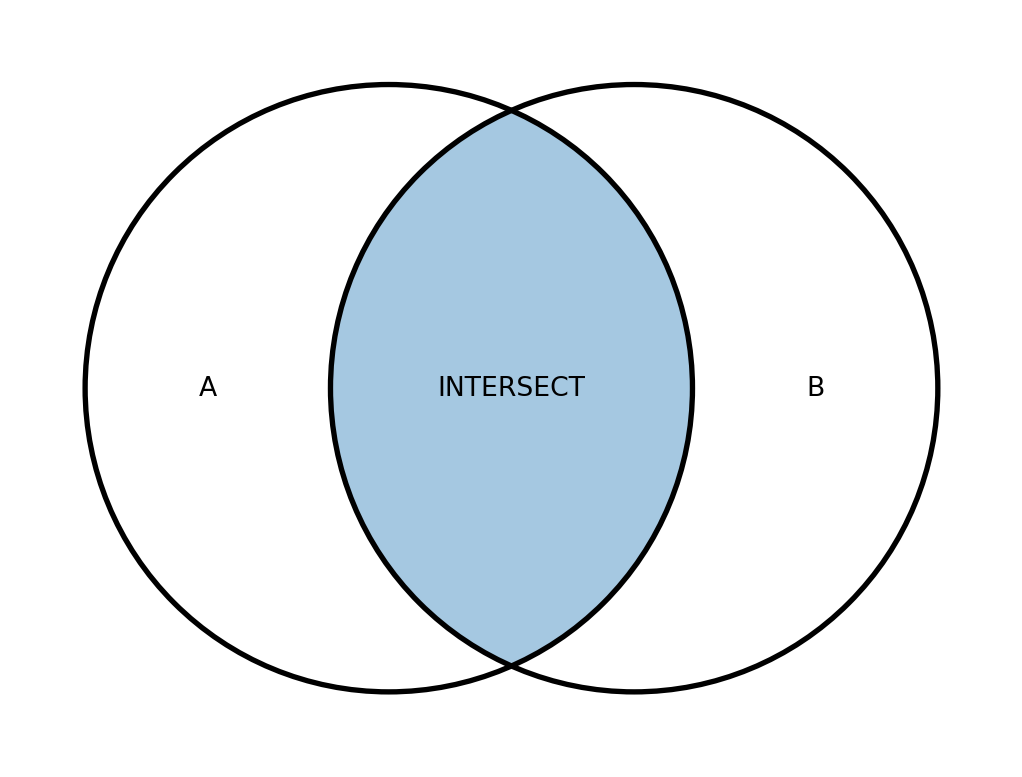 Схематично результат роботи об’єднань прийнято зображувати за допомогою діаграм Венна. Для INNER JOIN наведено на рисунку 19.2.